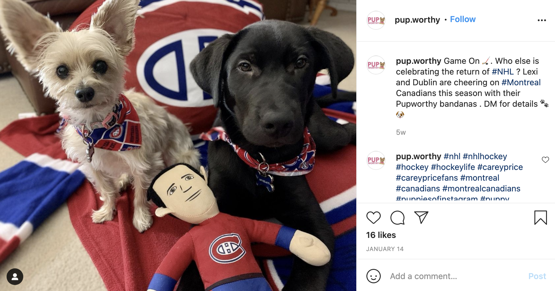 Additionally, this brand showcased their NHL-branded bandanas while tagging the associated team pages and got reshared immediately— not bad for a new product launch.