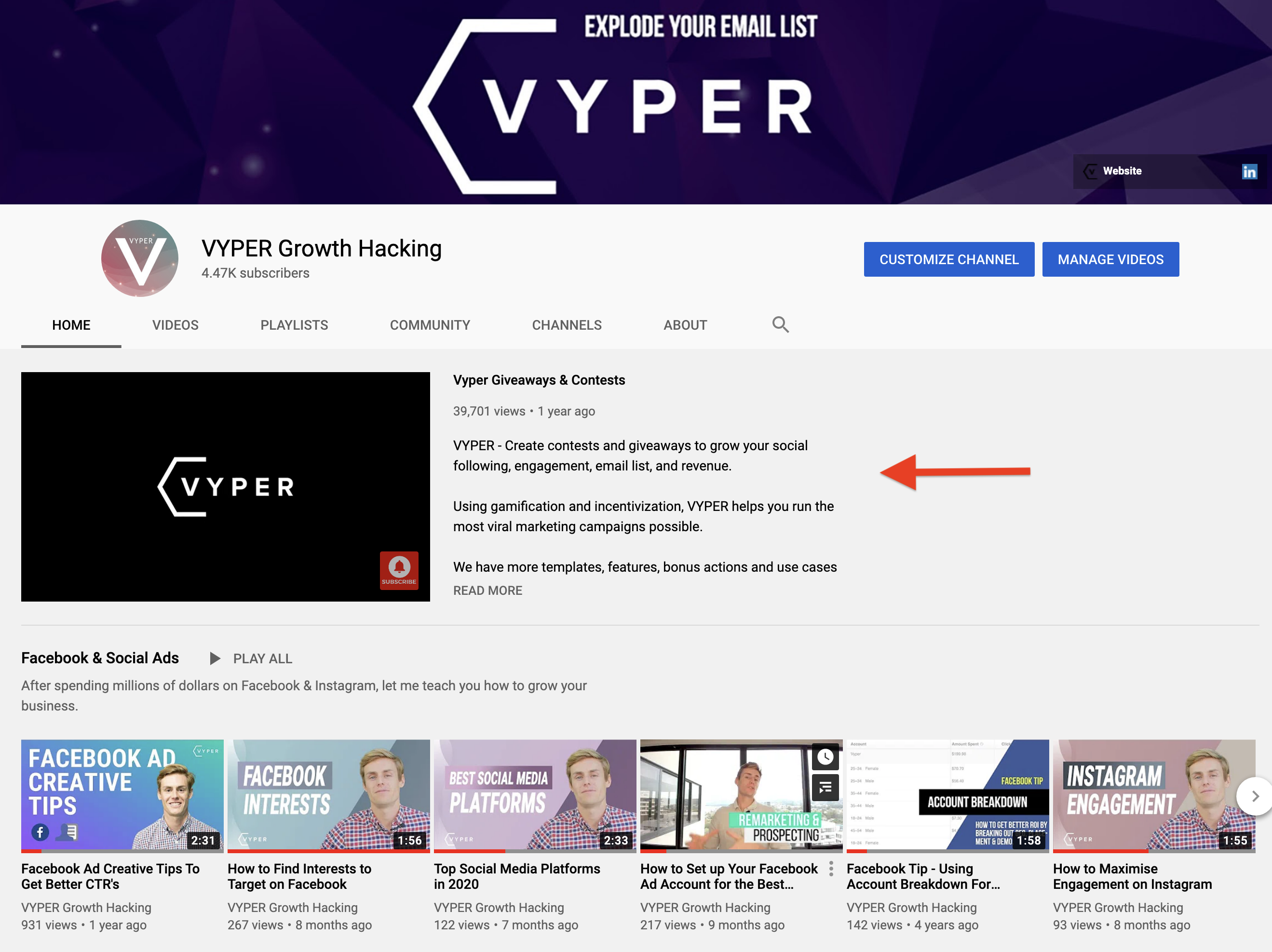 YouTube allows you to customize your channel page by adding a cover image and filling out the “About” section. However, the changes that you can make to your channel page are basic at best.